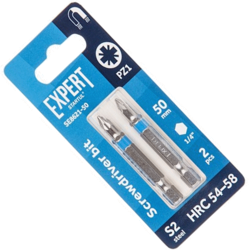 Бита для шуруповерта магнитная PZ1 50 мм 2 штуки STARTUL Expert с шестигранным хвостовиком 1/4". Изготовлена из стали S2.