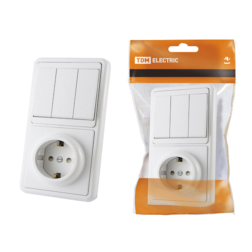 • Блок комбинированный БКВР 3-х кл. выкл + розетка 2П+З с з/ш TDM