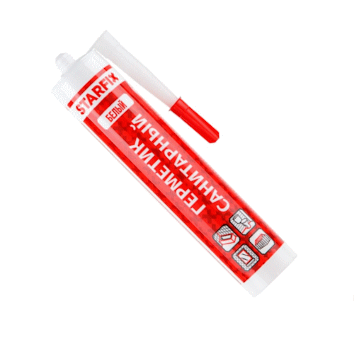 Герметик силиконовый STARFIX Sanitary Silicone белый 300 мл предназначен для уплотнения и долговременной герметизации соединений в помещениях с повышенной влажностью. Подходит для работ по остеклению, для затирки керамических деталей, для заполнения швов в санитарных целях, для уплотнения соединительных швов раковин, ванн, душевых кабин, для герметизации сантехники, соединений в бассейнах, водоснабжении, дренаже, ПВХ-трубах. Температура применения от +5 °С до +40 °С. Застывший герметик выдерживает температуру от -40 °С до +100°С. При работе температура герметика должна составлять +20-25 °С. Не использовать в контакте с природным камнем, такими как мрамор, гранит, а также с фиброцементом и растворами. Не использовать с металлами, такими как свинец, медь, цинк и латунь из-за коррозии. Не использовать для уплотнения аквариумов и подводных швов. Устойчив к ультрафиолетовому излучению.