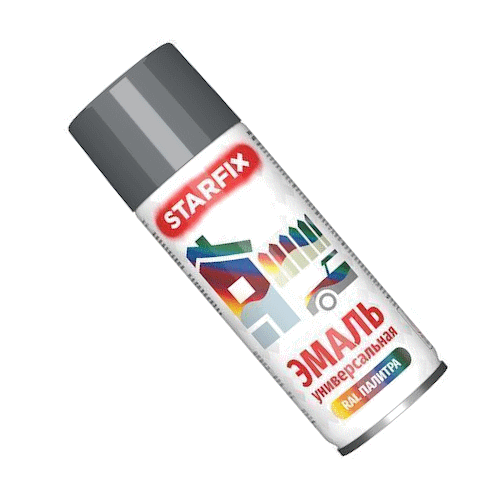Краска-эмаль аэрозольная универсальная серый 7024 STARFIX 520 мл применяется для быстрого и равномерного окрашивания, декоративного оформления и ремонта небольших по размеру объектов и бытовых изделий, элементов ландшафтного, интерьерного дизайна, не подвергающихся механическим нагрузкам. Рекомендуется нанесение по плотным минеральным поверхностям: бетонным, кирпичным, оштукатуренным, гипсокартонным, из искусственного и натурального камня, неглазурированной керамики, щебня; по металлическим поверхностям, в т. ч. окрашенным ранее порошковыми красками (наружные стенки холодильников, стиральных машин, микроволновых печей и т.п.), по натуральным плотным тканям (плакаты, элементы одежды), эксплуатирующимся в атмосферных условиях и внутри помещений. Возможно применение для окраски и декорирования изделий из древесины (элементы мебели, рамки для фото, окна, двери, и др., кроме полов) и стекла, эксплуатирующихся внутри помещений.