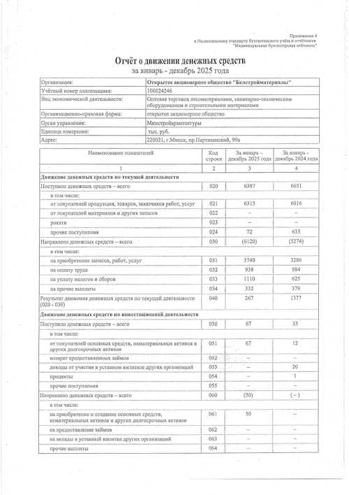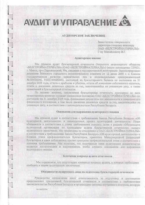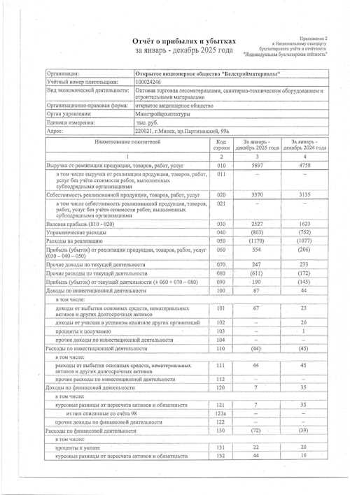 Ниже предоставлен годовой отчет о деятельности компании ОАО «Белстройматериалы» за 2025 год.