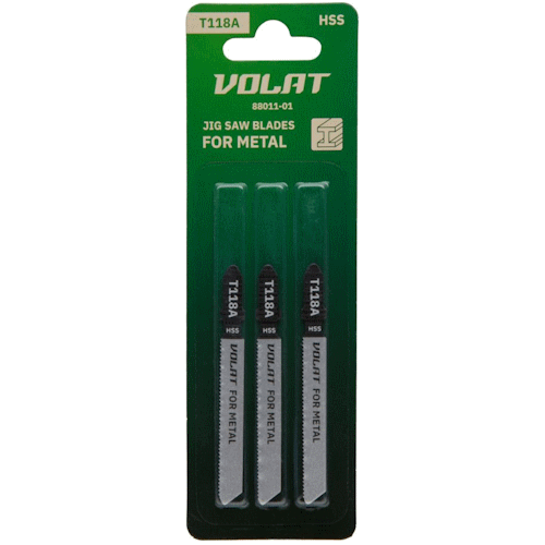 Пилка для электролобзика ВОЛАТ по металлу T118А 3 штуки – сменный пильный элемент по стали для электролобзиков. Используются для прямой тонкой распиловки и пропилов в алюминии, не толстом металле, жести, цветных металлах толщиной 1-3 мм. Пропил прямой, тонкий, для базовых работ.
