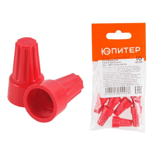 Соединительный зажим ЮПИТЕР СИЗ 5-20 10 штук предназначен для соединения медных или алюминиевых проводов при монтаже и ремонте электропроводок любых типов зданий и сооружений. Зажим СИЗ вручную накручивается на зачищенные концы проводов, соединяет их, изолирует место контакта и обеспечивает надёжный контакт в течение всего времени эксплуатации электропроводки.